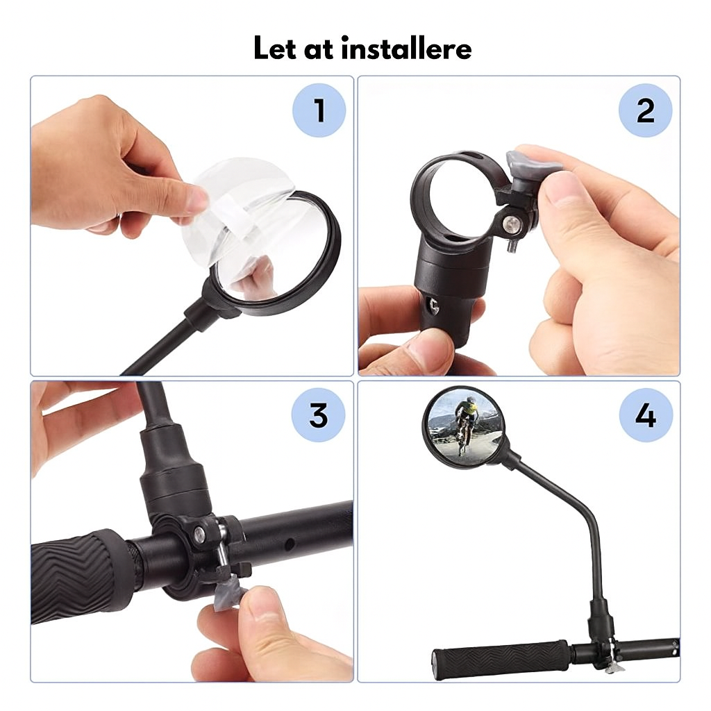 Placer blot spejlet på styret og brug de medfølgende anti-slip puder og skruer til at fastgøre det sikkert.